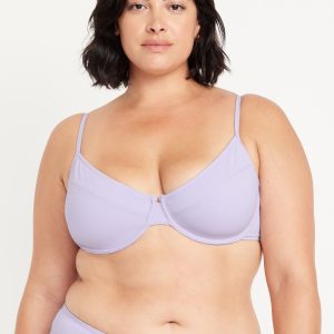 Textured Underwire Balconette Swim Top: adjustable straps, removable cups, underwire and side-boning support, adjustable hook-and-eye at back, full lining, #680791