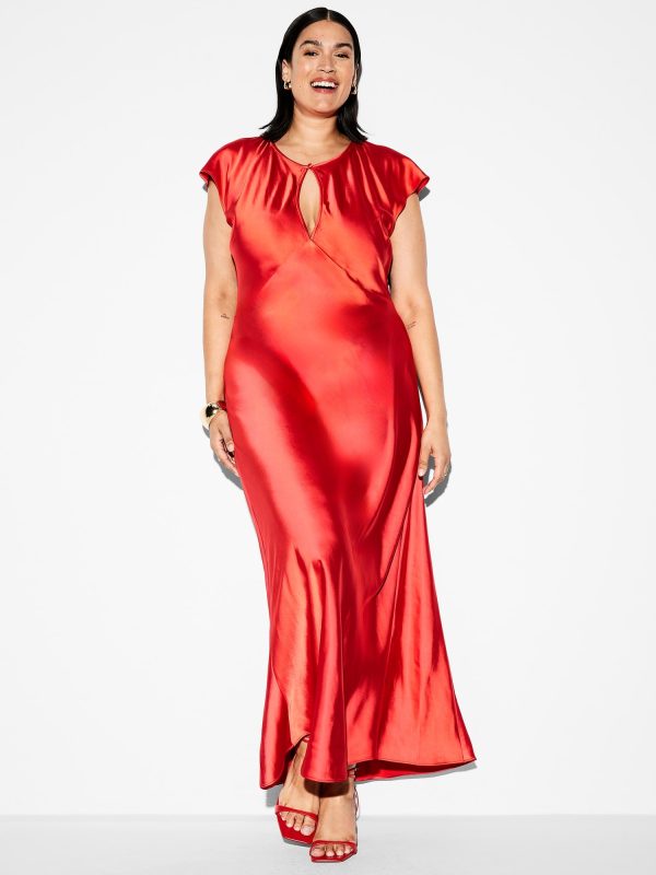 The Occasion by Old Navy Flutter-Sleeve Keyhole Satin Maxi Dress: New! Special dresses and sets, made to make an entrance.keyhole opening at center front, split flutter sleeves, center back zipper, seamed empire waist, bias cut, for parties, proms, graduations, weddings — these looks love an RSVP, #759333