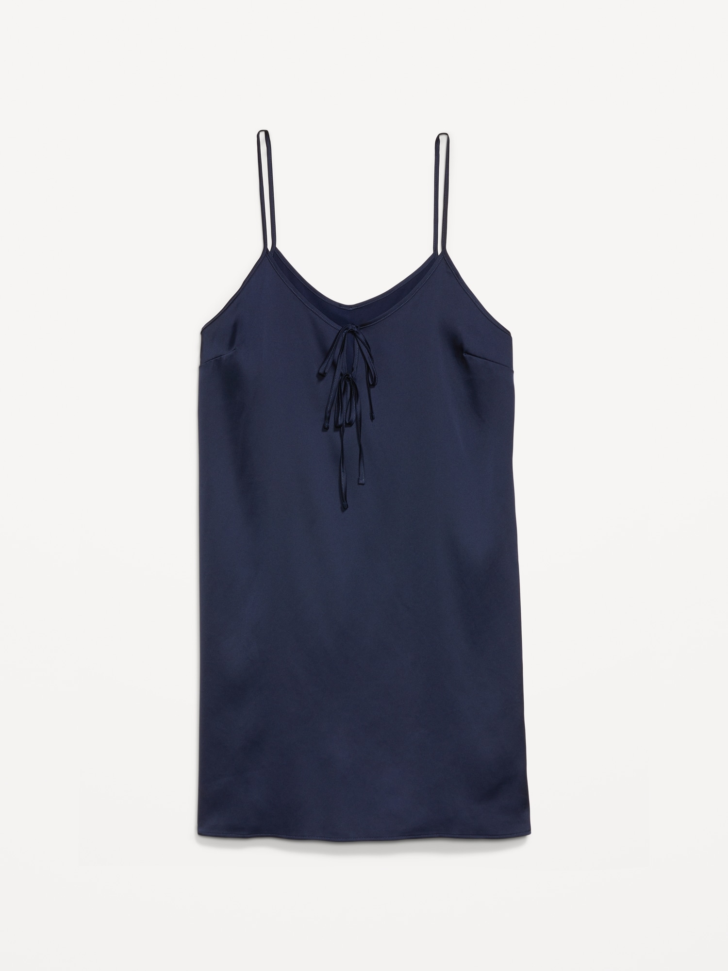 Tie-Front Satin Nightgown: tie-front scoop neck, spaghetti straps, keyhole opening at center front, darted bust, #766746