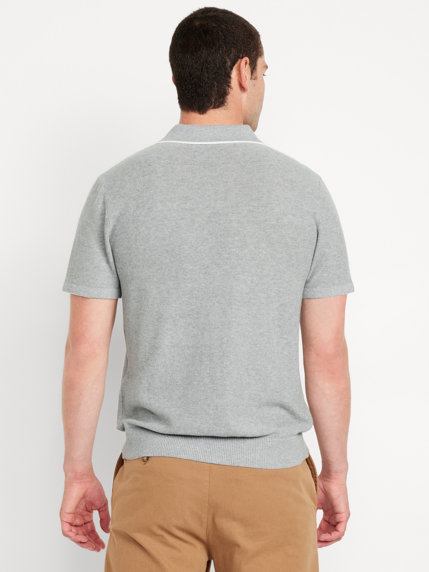 Tipped Collar Polo Sweater: spread collar, short sleeves, buttoned placket, pullover style, #802042