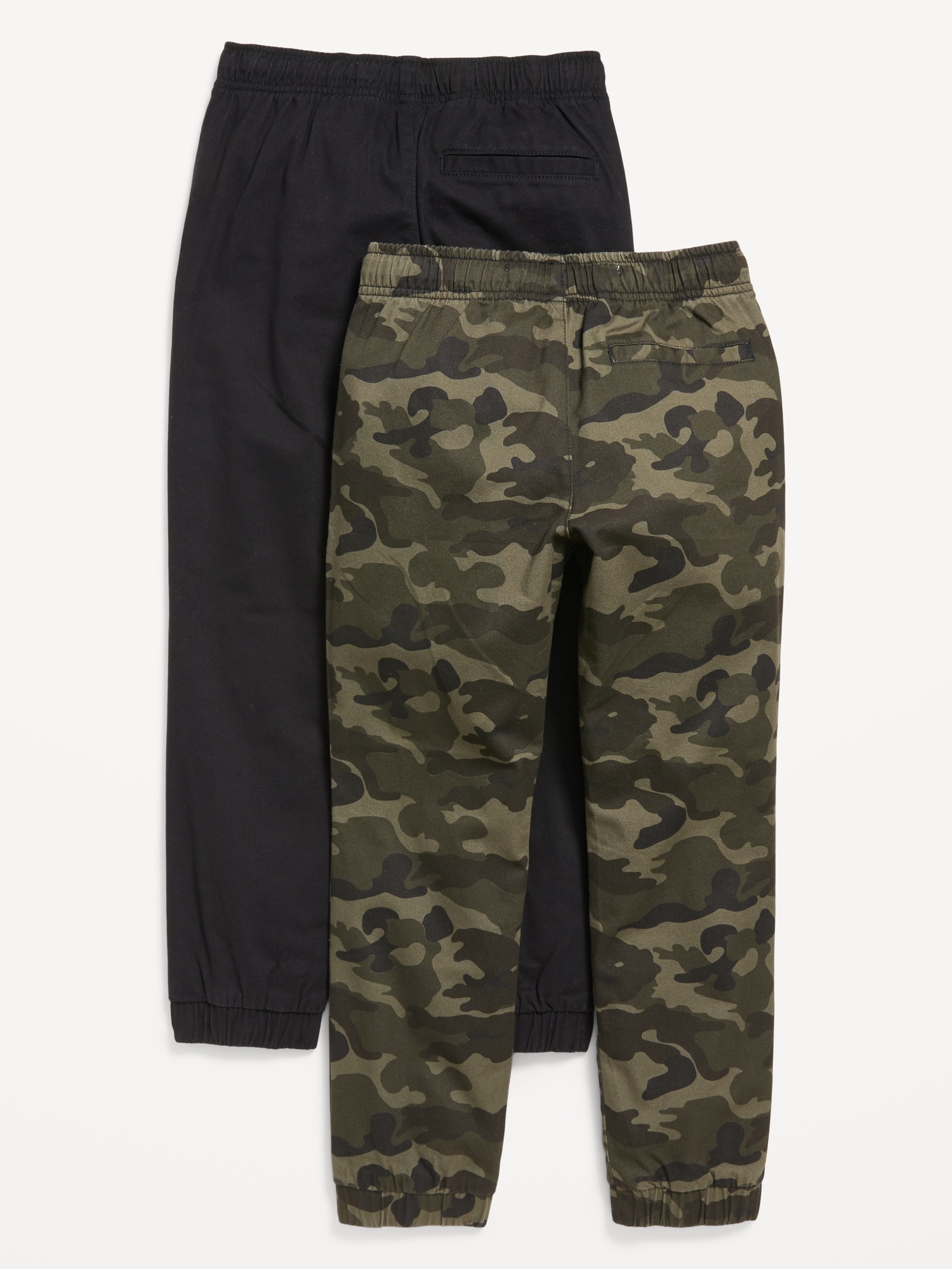 Twill Jogger Pants 2-Pack for Boys: elasticized comfort waistband, adjustable drawstring, diagonal hip pockets, faux fly, single welt pocket at back right., elasticized leg cuffs, easy pull-on style, online exclusive, #494513
