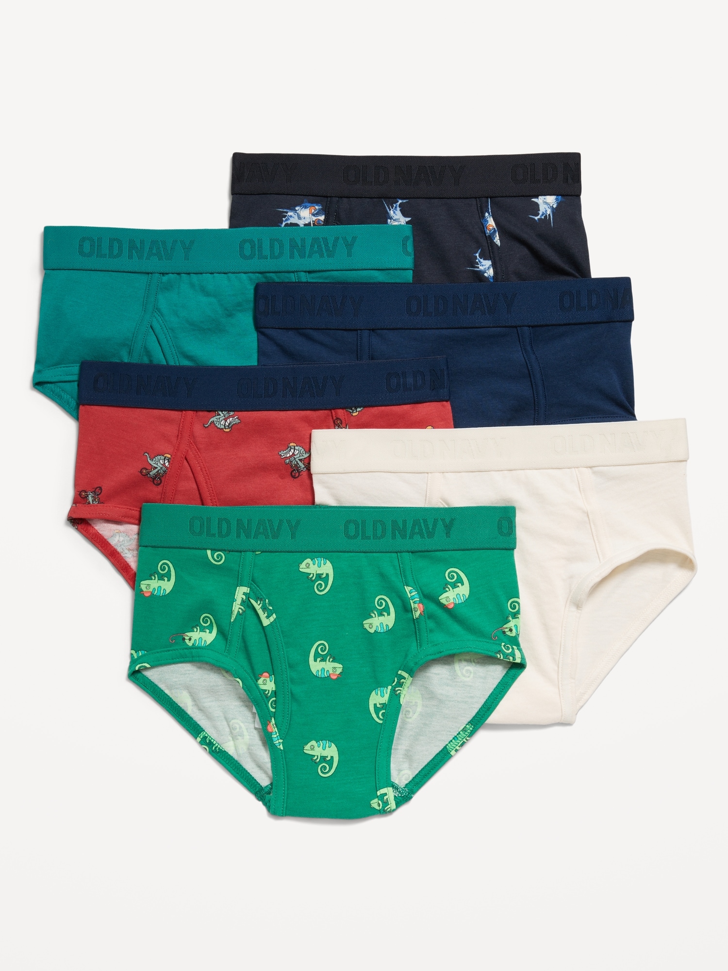 Underwear Briefs Variety 6-Pack for Boys: elastic waistband, repeating logo, fly front, rib-knit leg openings, #694344