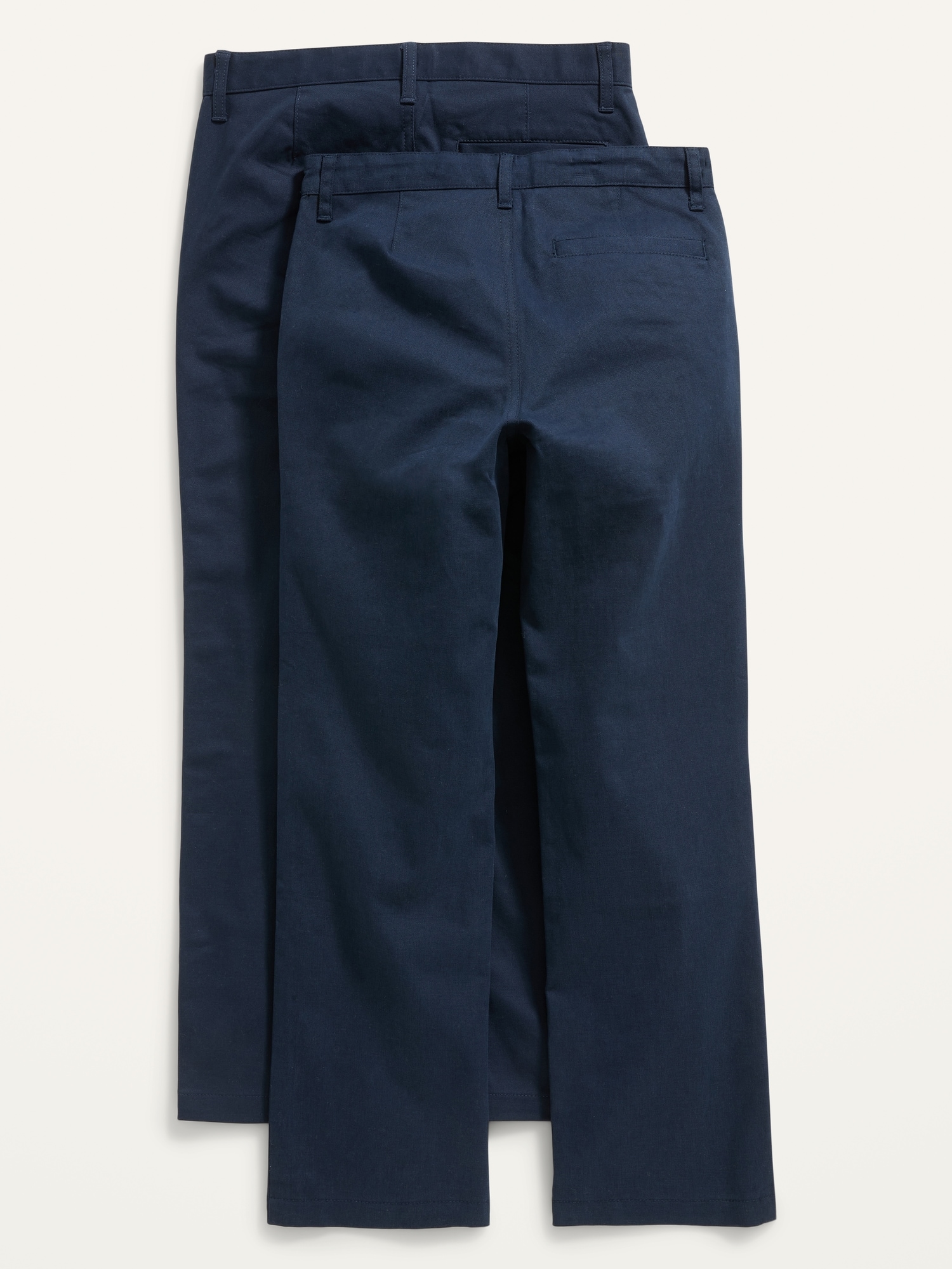 Uniform Built-In Flex Straight Pants 2-Pack For Boys: Interior adjustable waistband expands for a perfect fit., Hook-and-bar closure with decorative button in sizes 5-8; regular button closure in sizes 10-18., Zip fly., Flat front., Diagonal on-seam pockets in front; welt pocket at back right., Reinforced knees for added durability., Soft cotton twill., Engineered with innovative Built-In Flex stretch technology. Equal parts comfort & movement., #692982