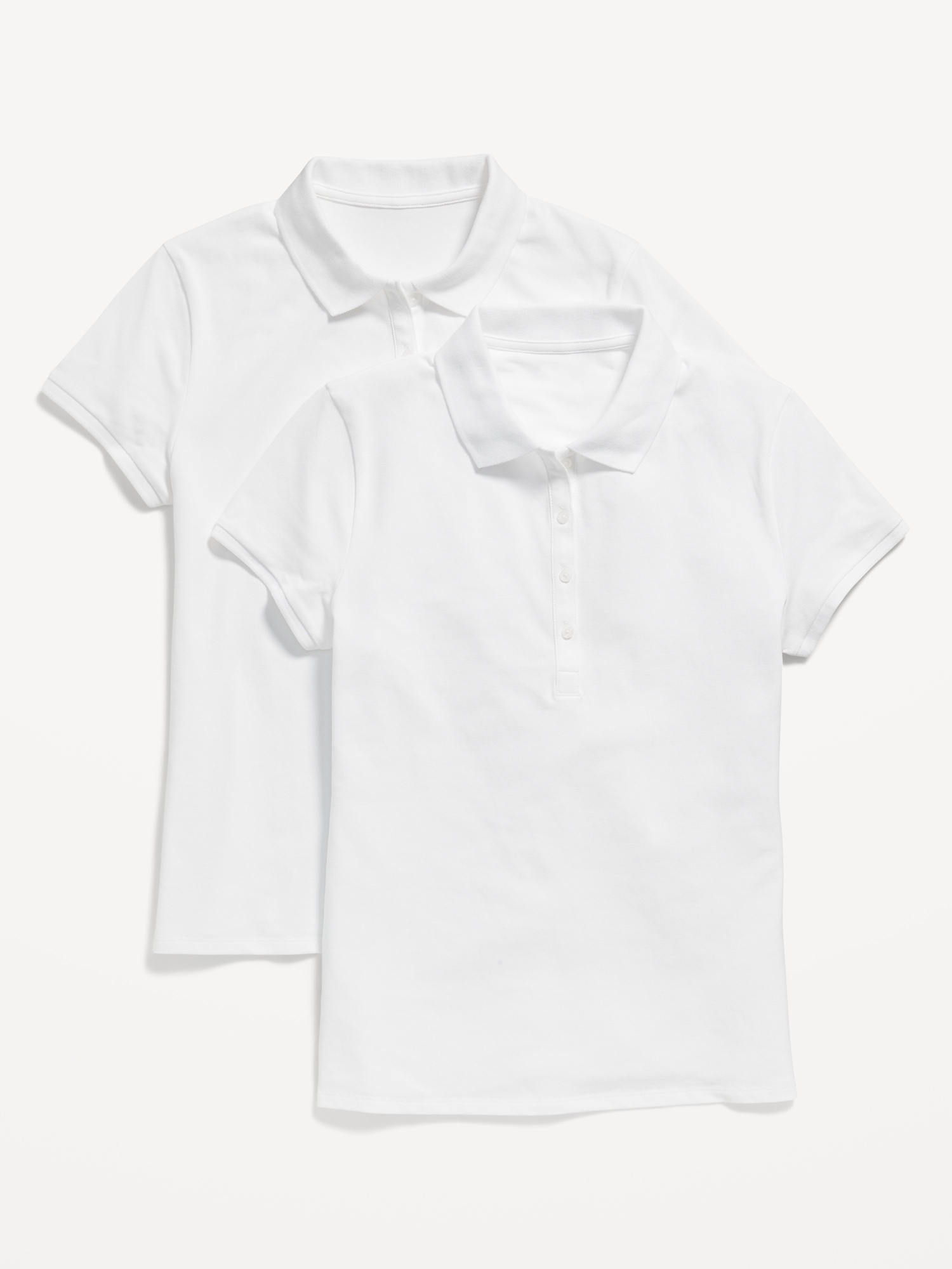 Uniform Pique Polo 2-Pack: pack includes 2 solid polos, spread rib-knit collar, short sleeves, four-button placket, drop-tail hem with vented sides, #654322