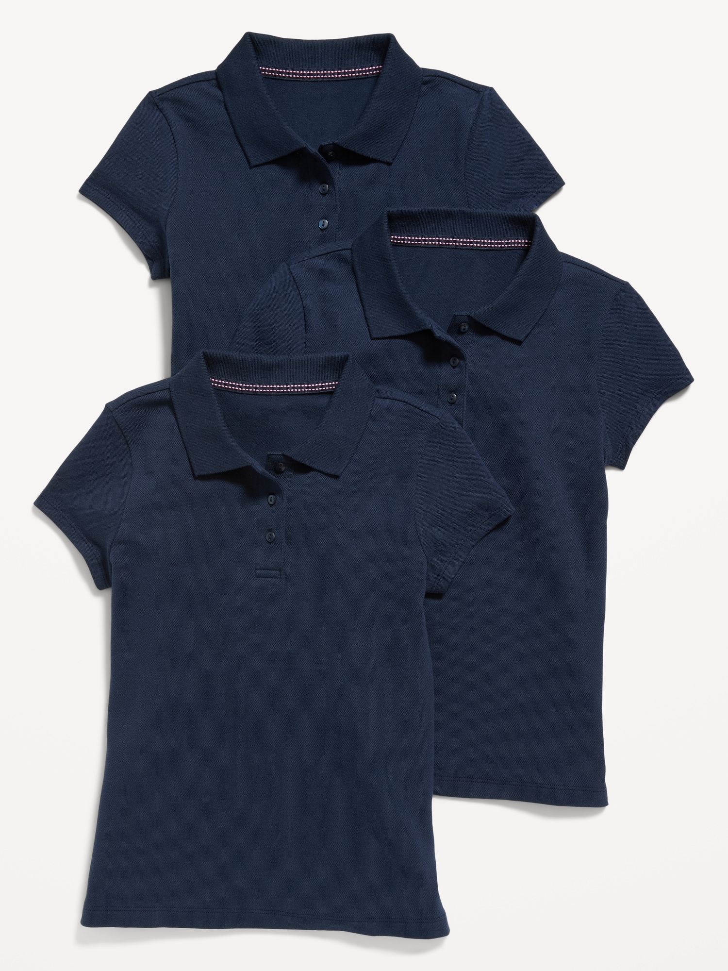 Uniform Pique Polo Shirt 3-Pack for Girls: Uniform Guarantee: Uniforms may be returned for a full refund with the original receipt for 365 days from the date of purchase.pack includes 3 school uniform polo shirts, rib-knit collar, short-sleeves, three-button placket, vented sides at hem, online exclusive, #658184