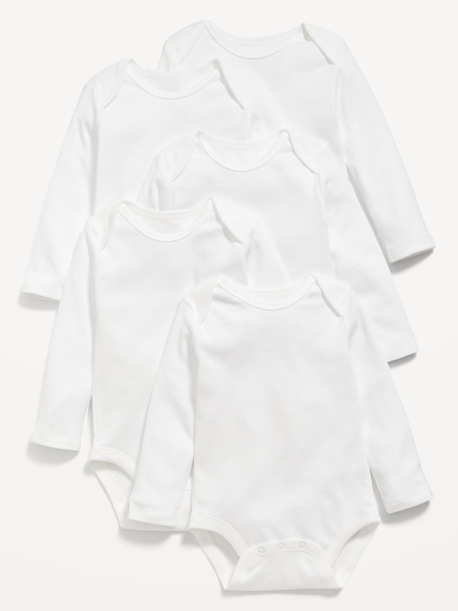 Unisex Bodysuit 5-Pack for Baby: envelope neckline, long sleeves, ring-snaps along the rib-knit inseam, online exclusive, #868817
