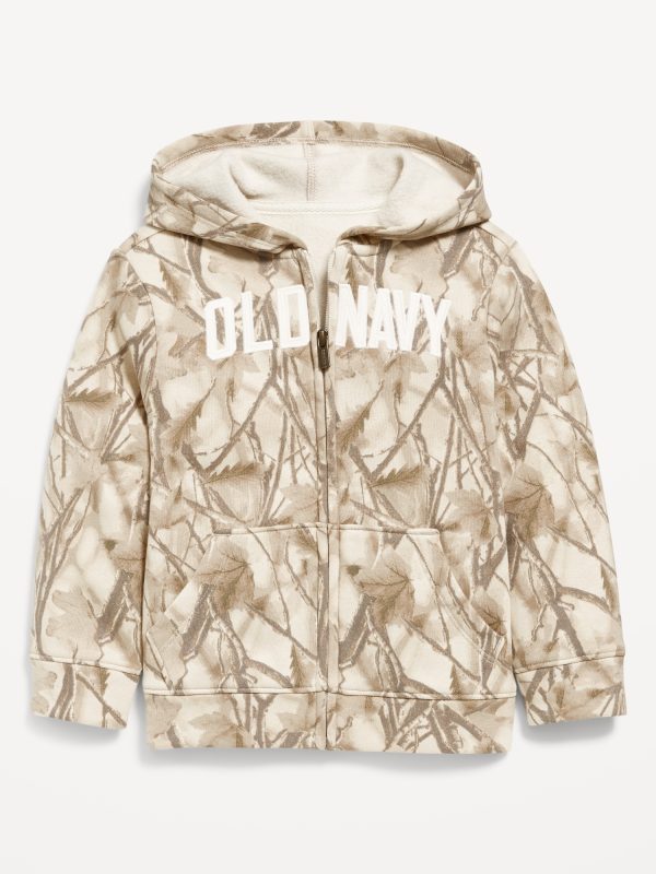 Unisex Logo-Graphic Zip Hoodie for Toddler: built-in hood, long sleeves, logo graphic at front, hand-warming scoop pockets, full-length zipper, rib-knit hem, #787827