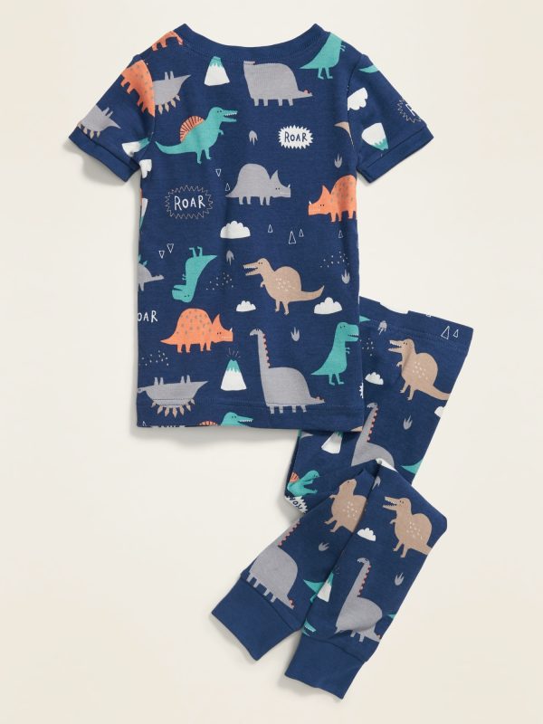 Unisex Snug-Fit Printed Pajama Set for Toddler & Baby: rib-knit crew neck, short sleeves, pajama bottoms have elasticized waist, rib-knit cuffs, all-over print, #892275