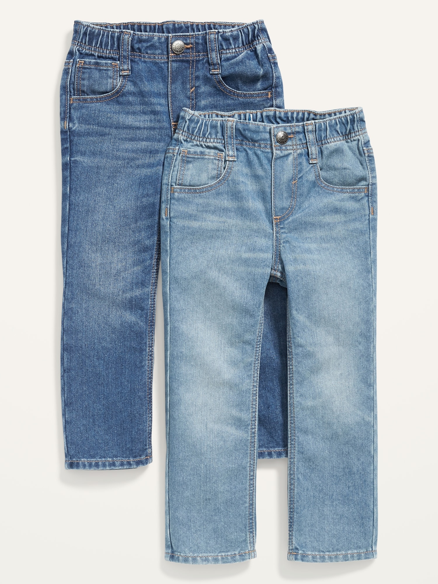 Unisex Wow Straight Pull-On Jeans 2-Pack for Toddler: Online exclusive!, Pack includes 2 pairs of straight jeans, each in a different wash., Elasticized pull-on waistband, with decorative non-functional button and built-in belt loops., Faux fly., Scoop pockets and coin pocket at front; patch pockets at back., Durable denim, with fading and whiskering for a vintage look., Why do we call these Wow Jeans? It’s all about that jaw-dropping low price, fantastic fit and reliable comfort . WOW ‘em in your choice of leg shapes from straight to skinny! ?? ??, #422258