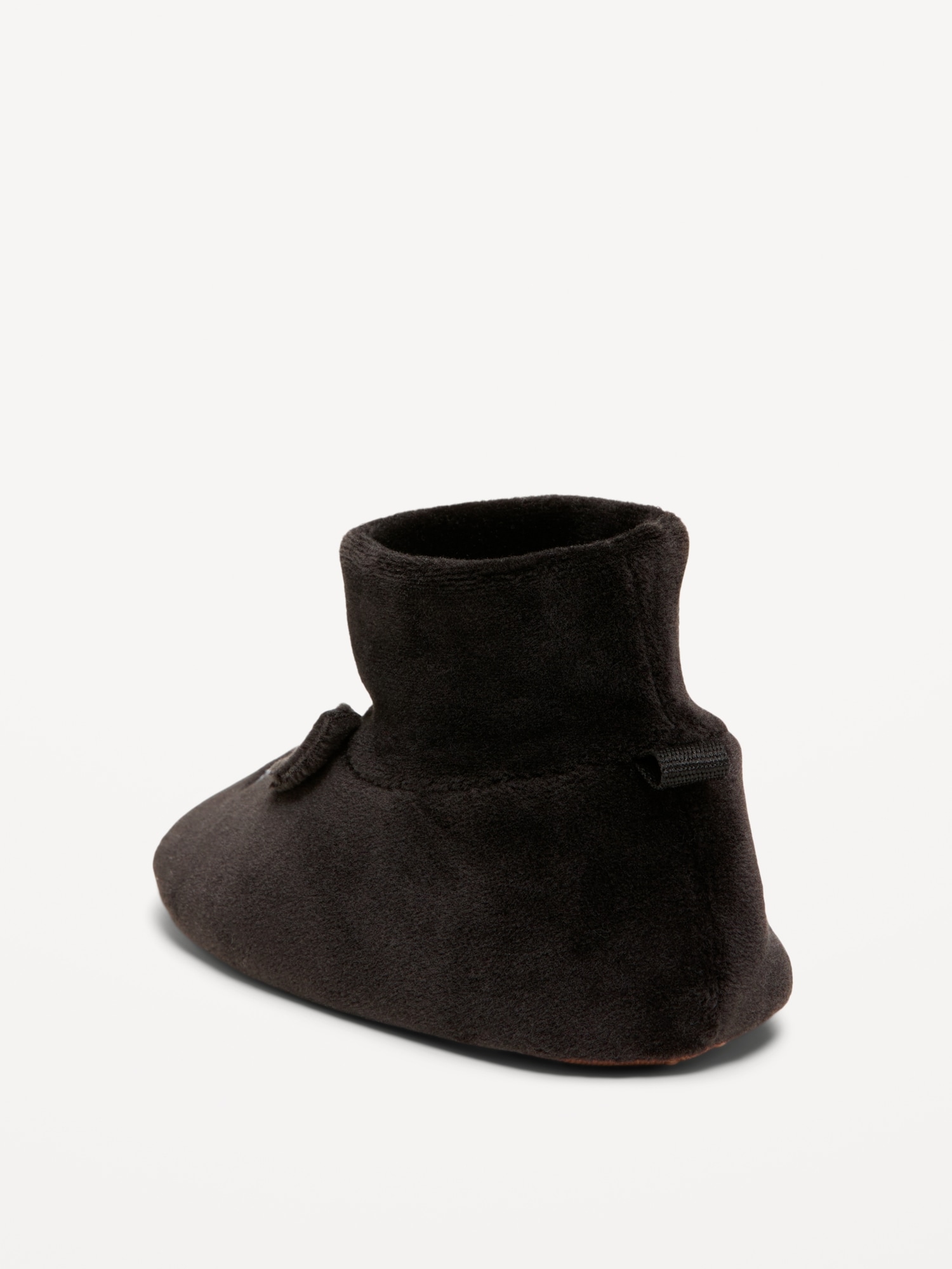 Velour Critter Slippers for Baby: bat features at front, faux-suede outsole, textured gripper dots, cozy cushioned foot bed, #787534