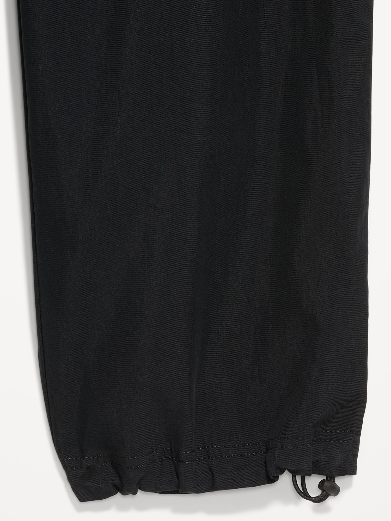 Vintage Baggy Parachute Pants: elastic-drawstring waistband, snap front, zip fly, diagonal front pockets, back welt pockets with hidden snaps, cinched drawcord hem, #784250