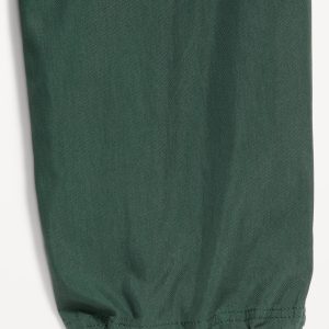 Vintage Baggy Parachute Pants: elastic-drawstring waistband, snap front, zip fly, diagonal front pockets, back welt pockets with hidden snaps, cinched drawcord hem, #784250
