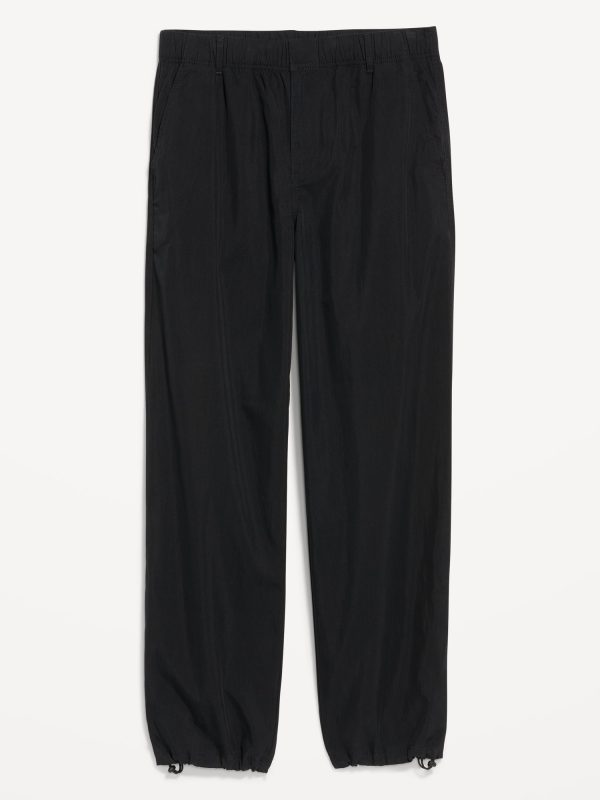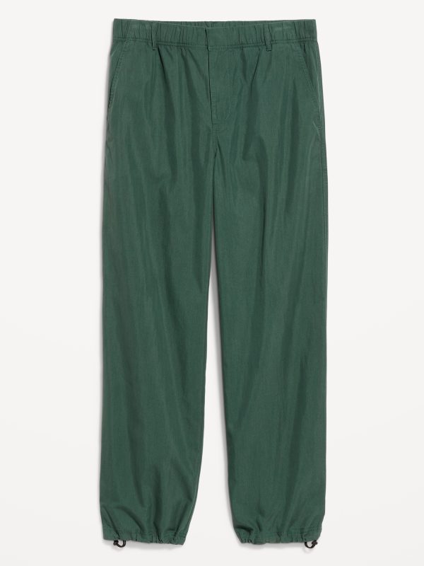 Vintage Baggy Parachute Pants: elastic-drawstring waistband, snap front, zip fly, diagonal front pockets, back welt pockets with hidden snaps, cinched drawcord hem, #784250