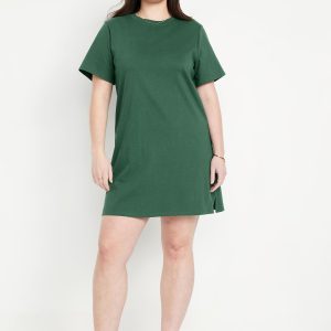 Vintage Crew-Neck Mini T-Shirt Dress: A super relaxed fit with lived-in feels.rib-knit crew neck, short sleeves, striped print, #705238