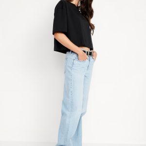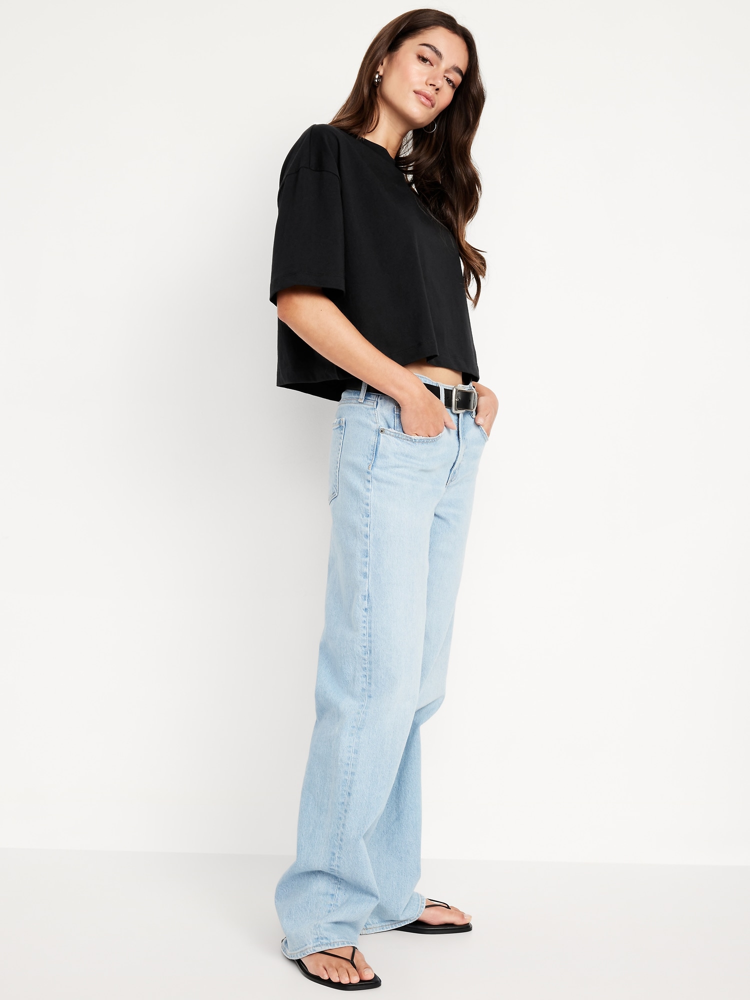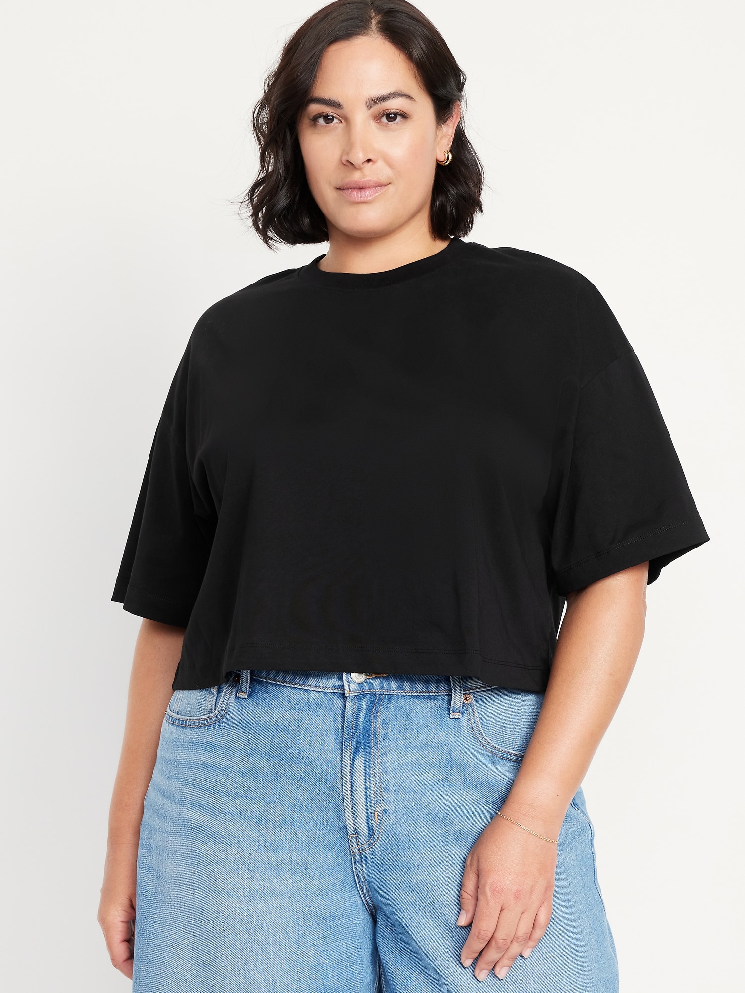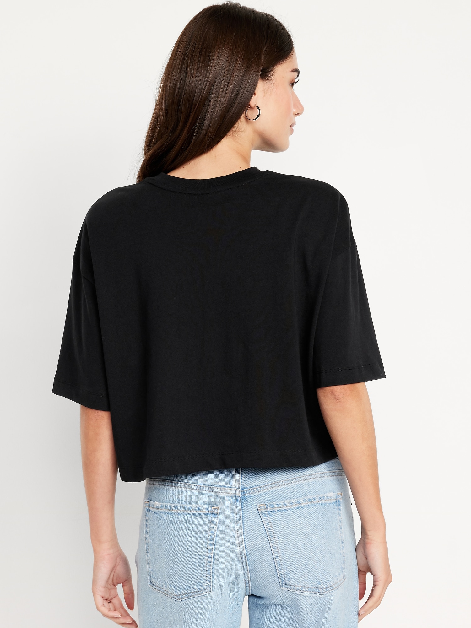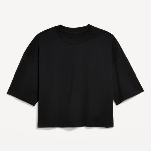 Vintage Crew-Neck Oversized Crop T-Shirt: A super relaxed fit with lived-in feels.rib-knit crew neck, elbow-length drop-shoulder sleeves, #693059