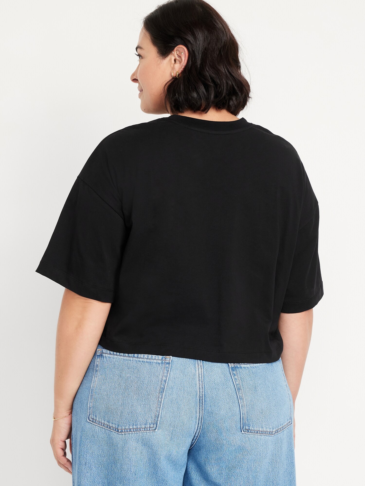 Vintage Crew-Neck Oversized Crop T-Shirt