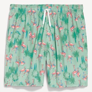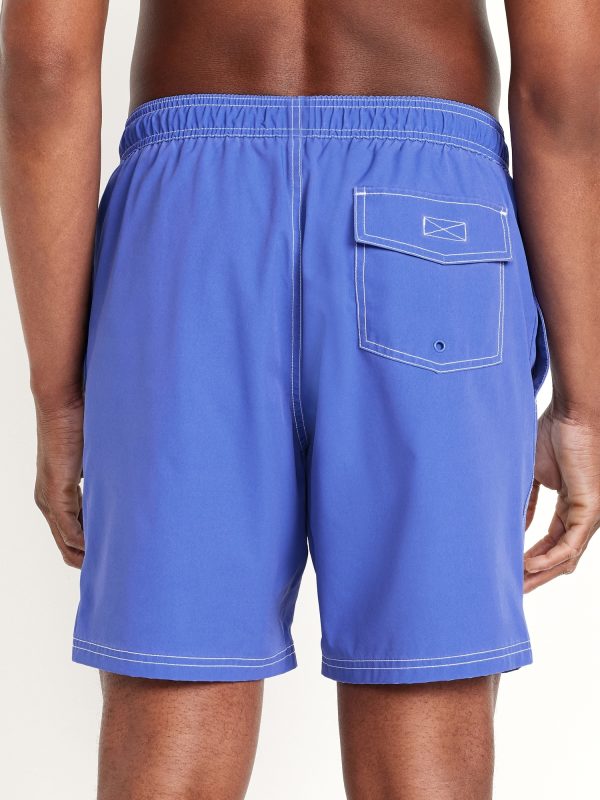 Washed Swim Trunks — 7-inch inseam: elastic-drawstring waistband, on-seam pockets, back patch pocket with grommet drain, built-in mesh briefs, pull-on style, #766290