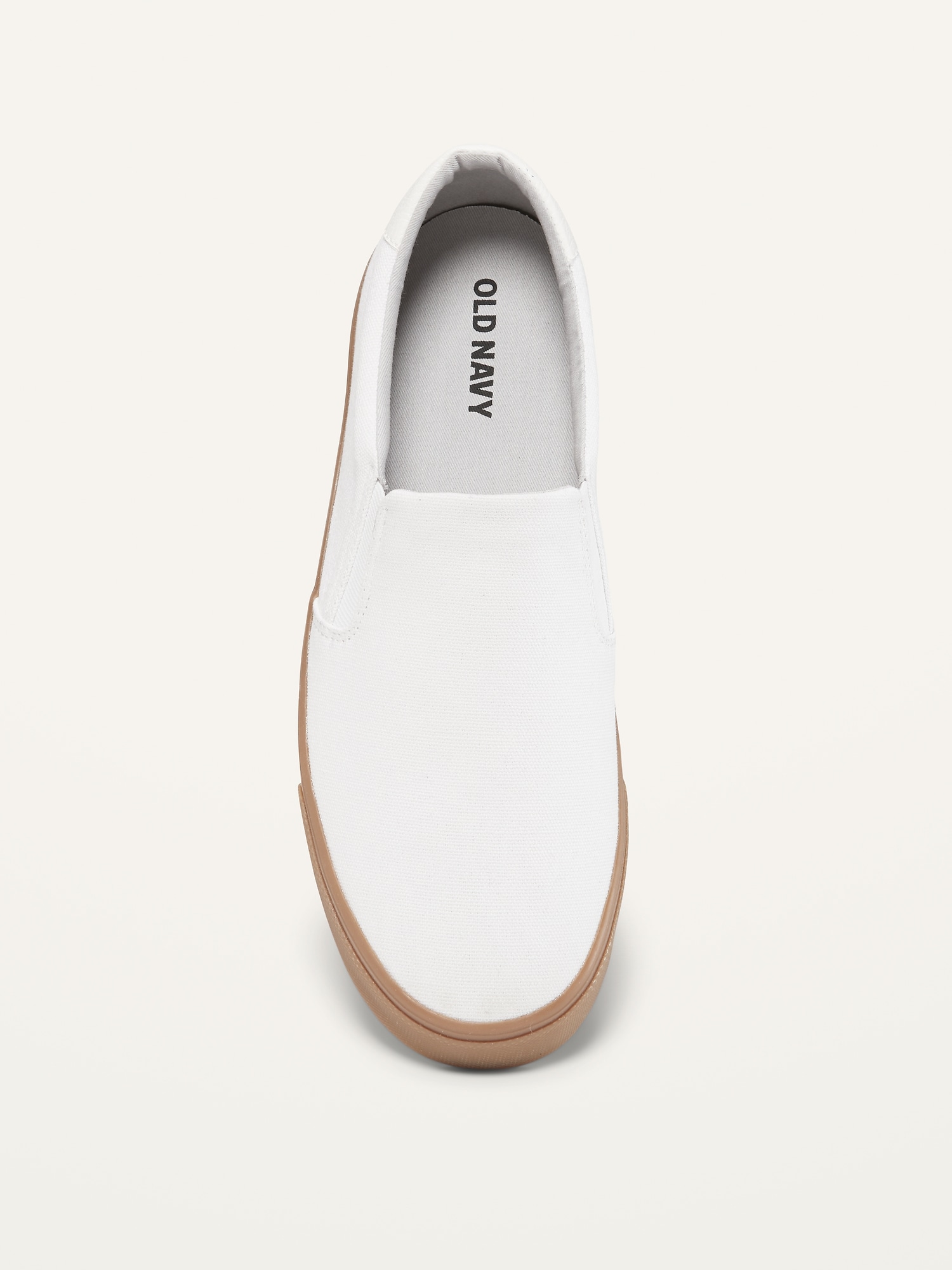 Water-Repellent Canvas Slip-On Sneakers: Soft, durable canvas upper, with webbed-elastic side goring., Cushioned insoles made with memory foam. Like walking on fluffy little clouds., Contrasting thermoplastic rubber midsole and textured outsole., These sneakers are water- and stain-repellent. Take that, rain and dirt., Easy slip-on style., #883622