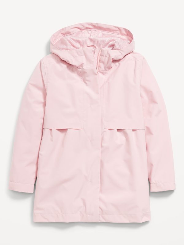 Water-Resistant Hooded Jacket for Girls: built-in hood, long sleeves, full length zipper, water resistant shell, #802956