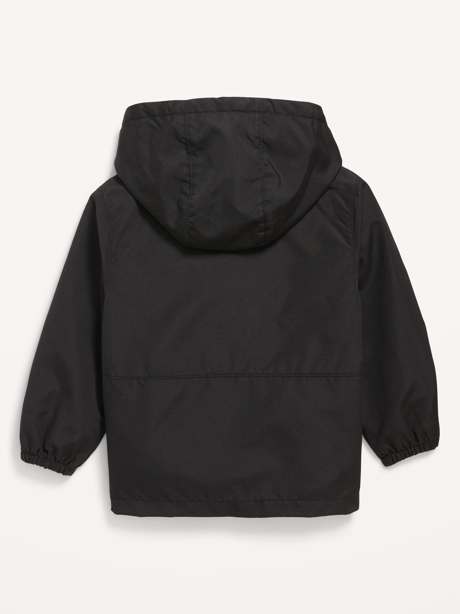 Water-Resistant Hooded Jacket for Toddler Boys: built-in hood, long sleeves, full-length zipper, on-seam welt pockets, water resistant shell, #493677