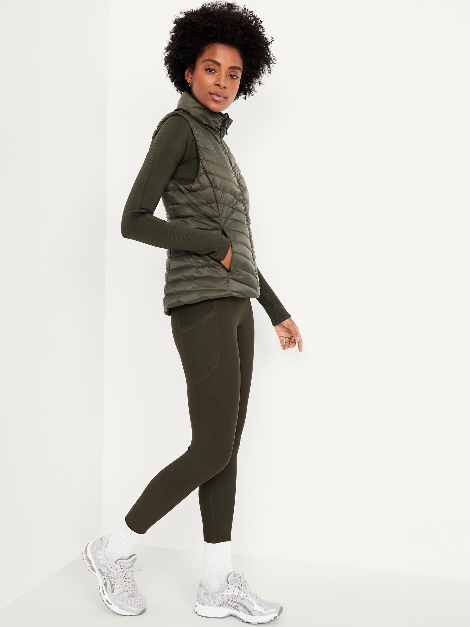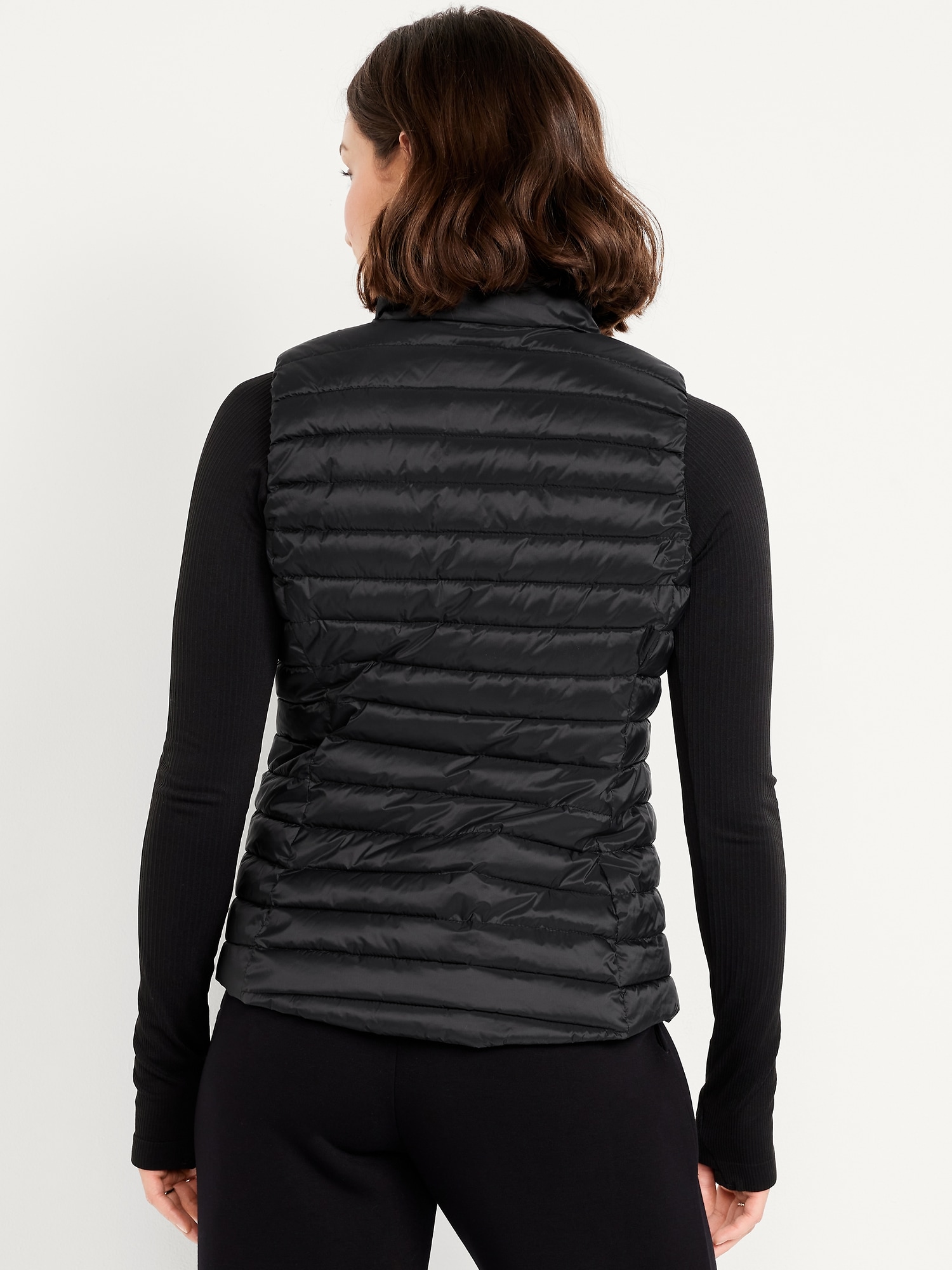 Water-Resistant Packable Puffer Vest: mock neck, full-zip front with zipper guard, on-seam pockets, taffeta lining, #784477