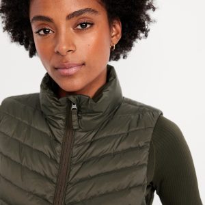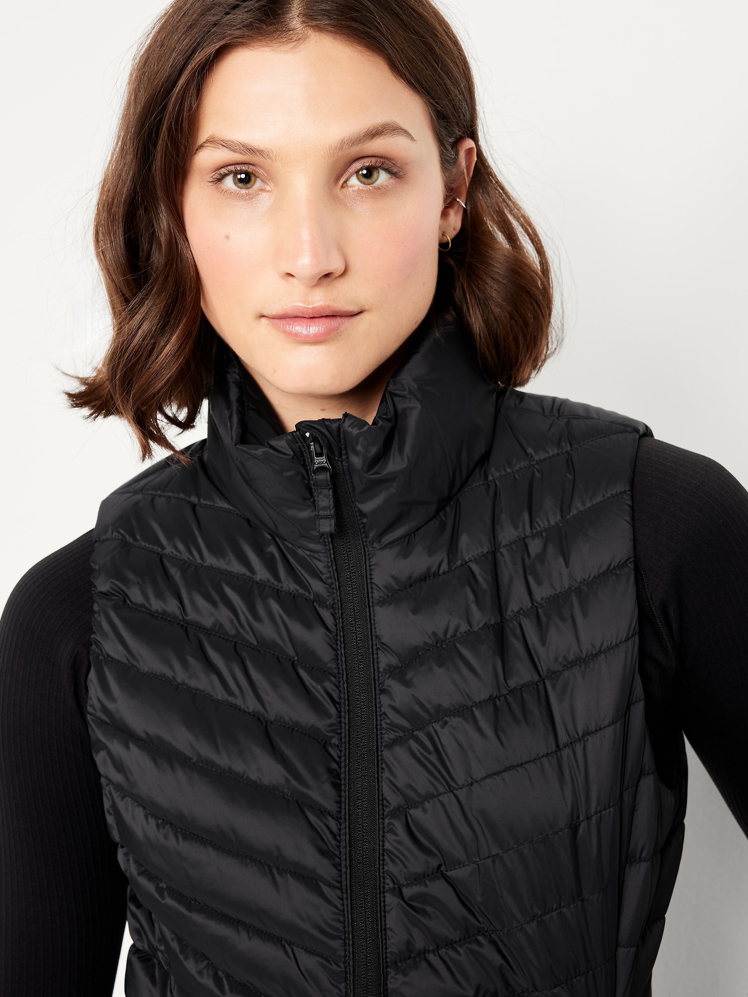 Water-Resistant Packable Puffer Vest: mock neck, full-zip front with zipper guard, on-seam pockets, taffeta lining, #784477