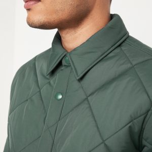 Water-Resistant Quilted Jacket: spread collar, long sleeves, snap front, side-seam pockets, #800294