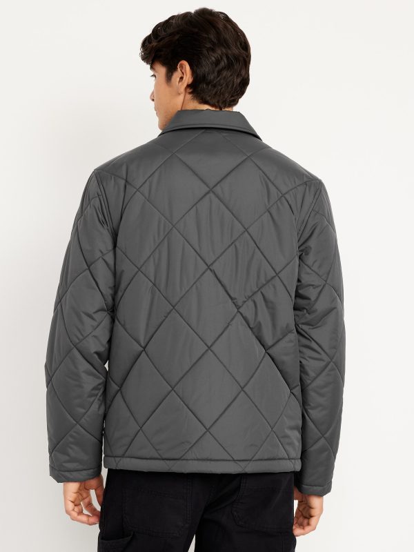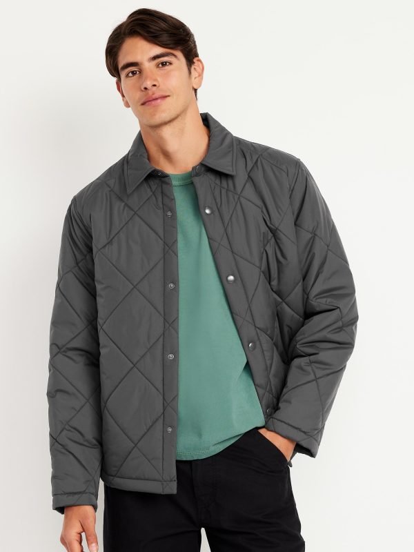 Water-Resistant Quilted Jacket: spread collar, long sleeves, snap front, side-seam pockets, #800294