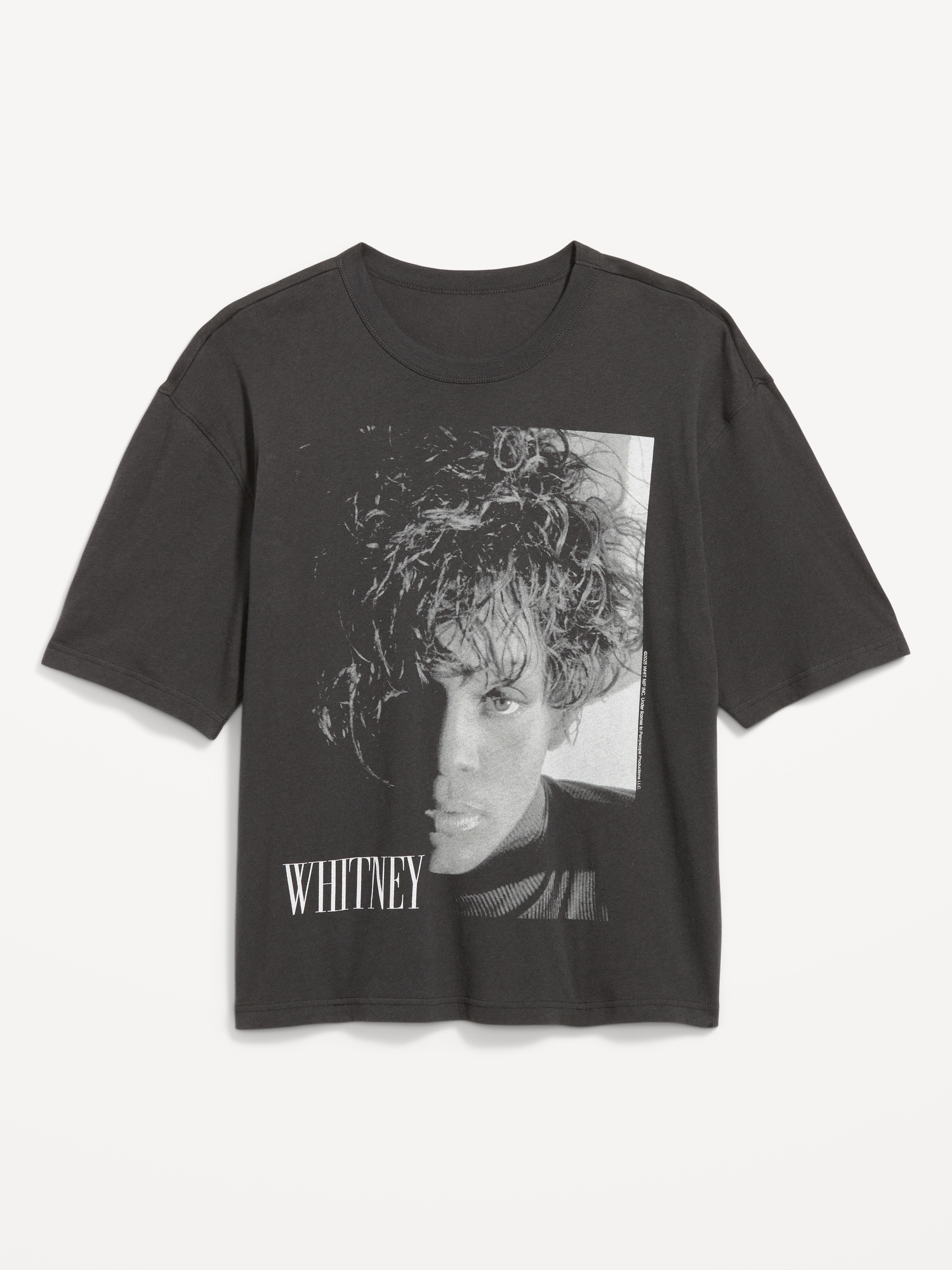 Whitney Houston™ Cropped T-Shirt: rib-knit crew neck, short sleeves, licensed photo graphic, Copyright © 2025 Sony Music Entertainment. All Rights Reserved, #751592