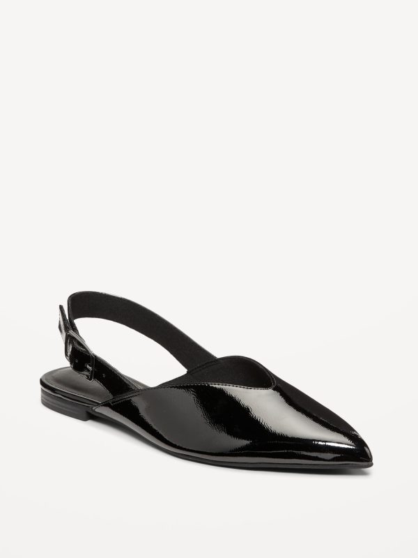 Wide Strap Slingback Flats: pointed toe, V-cut, buckle fastening at ankle, open heel, firm foot bed, textured outsole, #750760