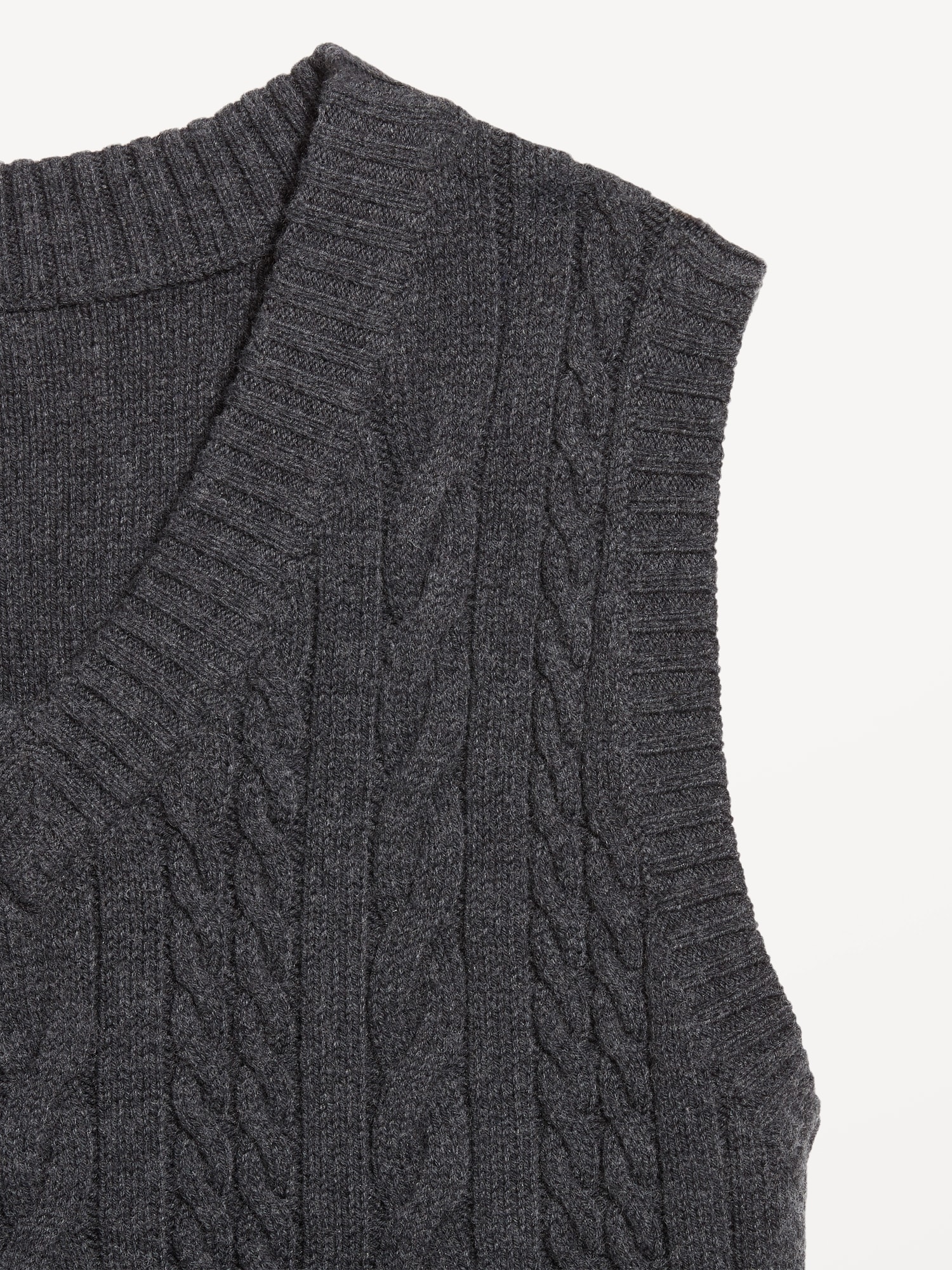 Wool-Blend Cable-Knit Vest: v-neck, cable-knit front, rib-knit trim, #785030