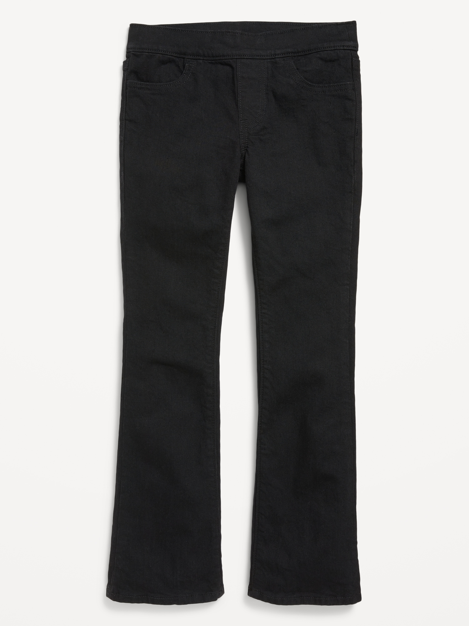 Wow Boot-Cut Pull-On Jeans for Girl: interior adjustable waistband, elasticized pull-on waistband, faux fly, functional scoop pockets in front, patch pockets in back, #509368